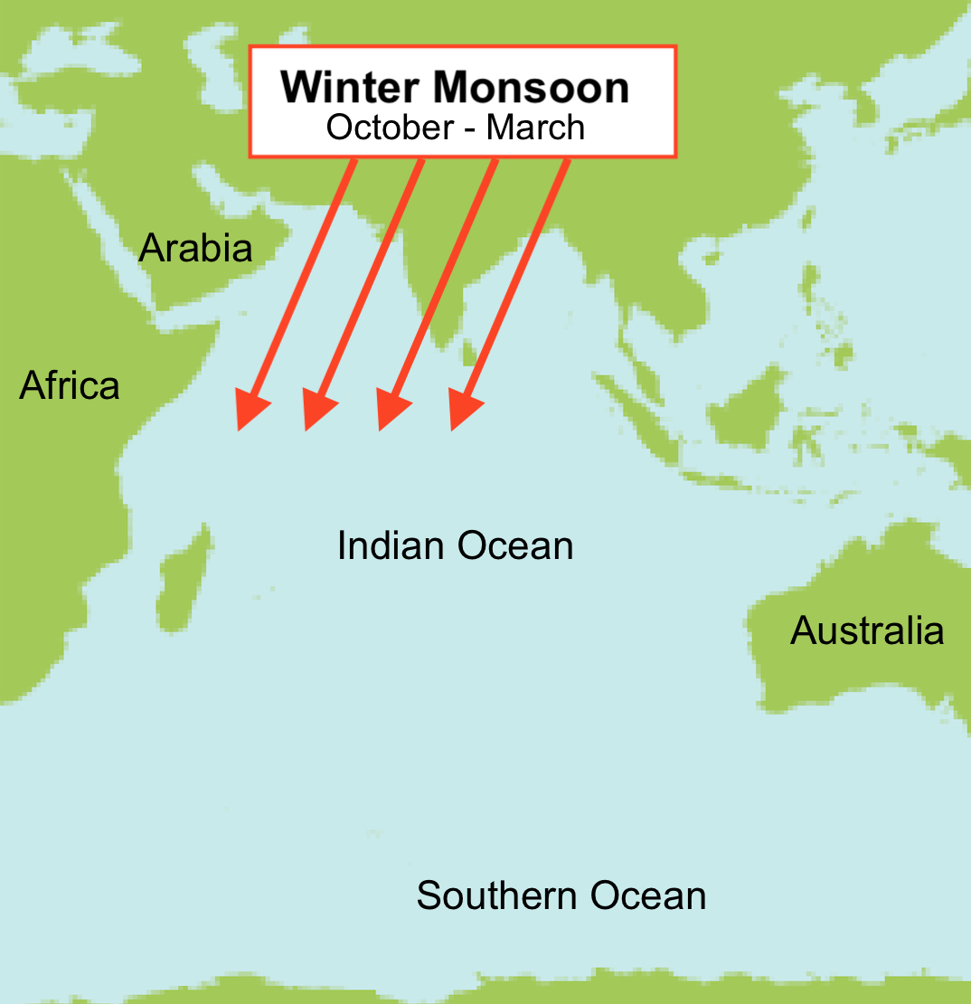 simple matter of winds and currents. The Winter Monsoons blow to the southwest,